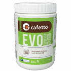 EVO rengøringspulveret fra Cafetto fjerner effektivt kaffeolier, kaffegrums og kaffepletter. Derudover er ingredienserne uden GMO, fosfater samt klor, og er hurtigt biologisk nedbrydeligt. Rengøringspulveret efterlader lugt, der ville kunne påvirke kaffen.
